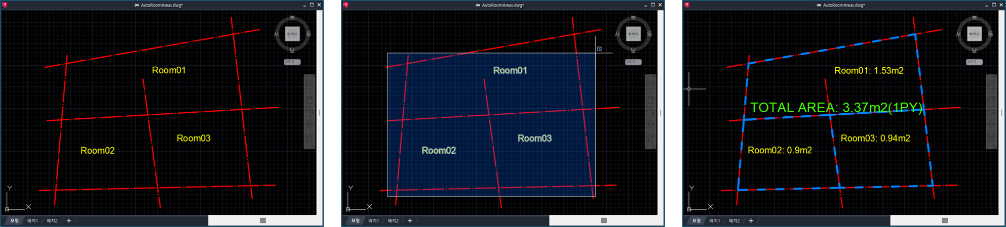 'ARA' (Auto Room Area) 명령으로 실명을 윈도로 선택하면,