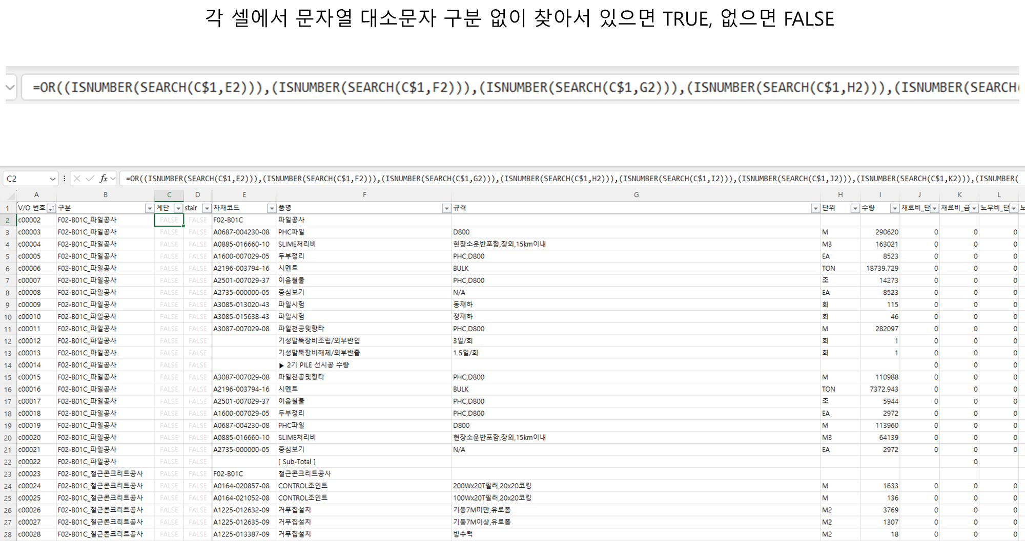 여러셀에 걸쳐 원하는 문자열을 찾고 싶을 때