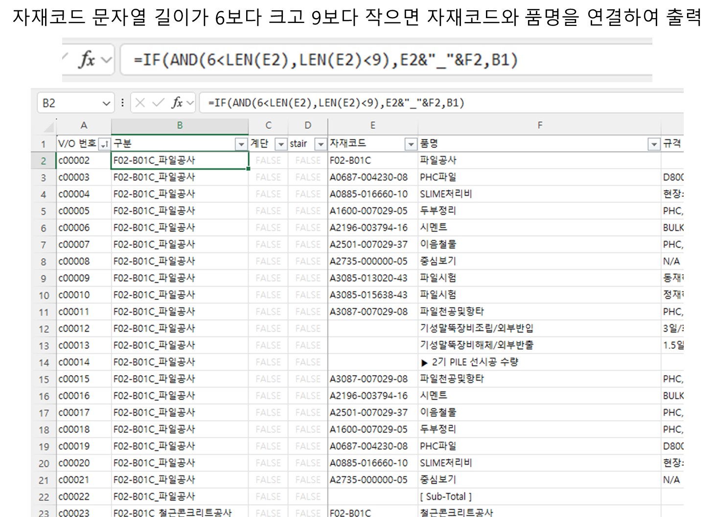 실무에서 특정 인접 셀을 JOIN 하고 싶은데 특정셀의 문자열 길이가 맞는 경우에만 JOIN한다.